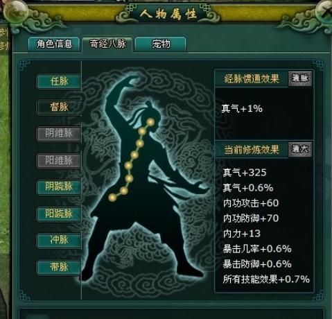 大经脉,每一条都有属于他的一些功能很有意思的就是,八大经脉里的每一条经脉中都会有8个穴位,每个穴位相对应的属性也是有所不同的。