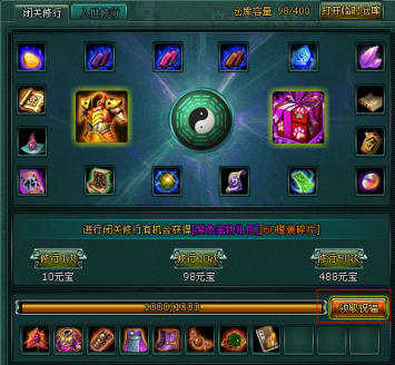 【活动内容】:活动期间,参与游戏内的修行,凡成功领取“闭关修行”或“入世修行”祝福奖励的玩家,都能获得70级橙装盒子*1