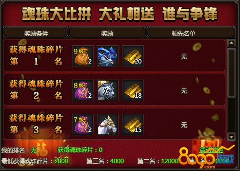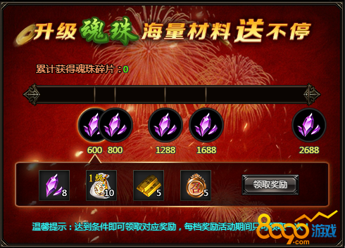 活动周五开启,持续一天,活动期间玩家累计获得魂珠碎片满足条件即可领取