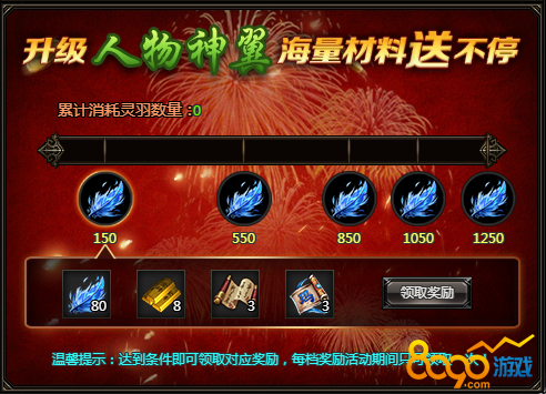 活动期间,玩家消耗灵羽数量满足条件,即可领取对应的奖励