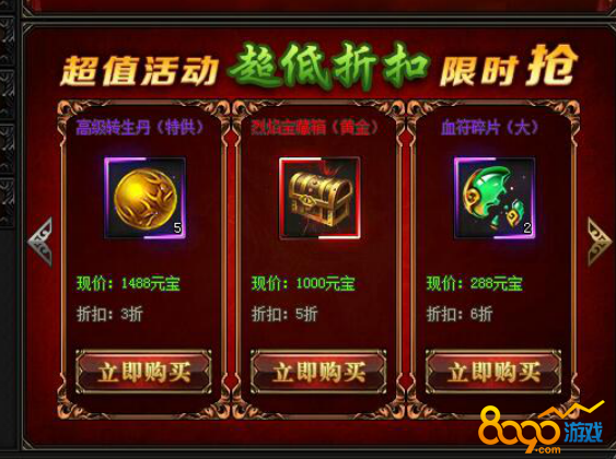 每日开启,玩家可使用对应货币购买随机刷新出的特价商品。