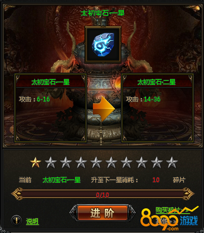 宝石,可以极大的增加角色的攻击力,升级需要消耗宝石碎片,宝石碎片可以通过副本、商城购买或者参与活动获得;
