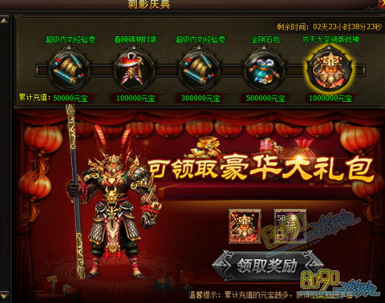 活动内容:活动期间内累计充值满一定的金额即可获得相应奖励