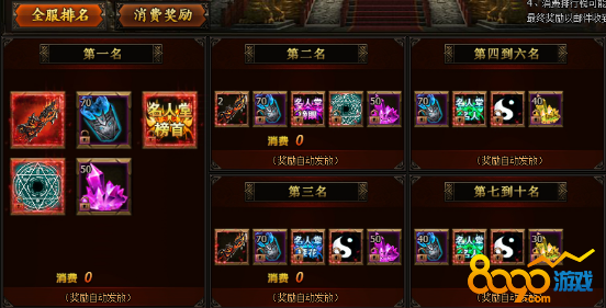 活动内容:活动期间内消费100W即可上榜,排名前10可获得丰富的奖励。