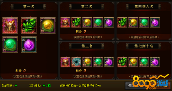 活动内容:活动期间内寻宝获得3000寻宝积分即可上榜,排名前10可获得丰富的奖励。