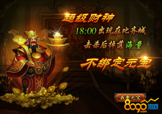 活动内容:每天18点会在比齐城出现财神BOSS,击杀会掉落非绑定元宝
