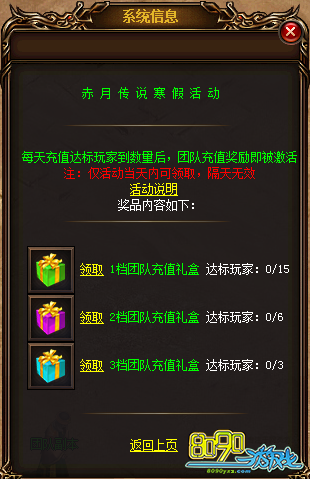 【活动内容】活动期间,每天充值玩家数量达到要求,即可领取奖励,注:当天内领取完毕,隔天无效