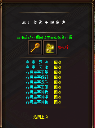 【活动内容】活动期间,回收以下的主宰可获得40个挖宝钥匙和40个器灵碎片