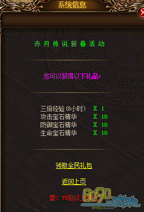 【活动内容】活动期间,每天75级或以上的玩家即可领取大量奖励