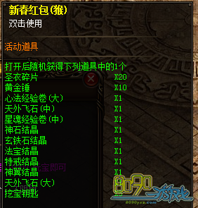 【活动内容】活动期间,每日累计充值10000元宝即可获得新春红包1个(注:限1个)