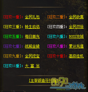 活动内容:活动期间内70级以上的角色每天每累计1小时在线可领一个狂欢礼包,每天最多6个