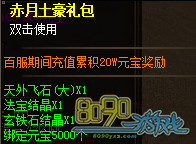 活动期间内,累计充值20w元宝可获得赤月土豪礼包