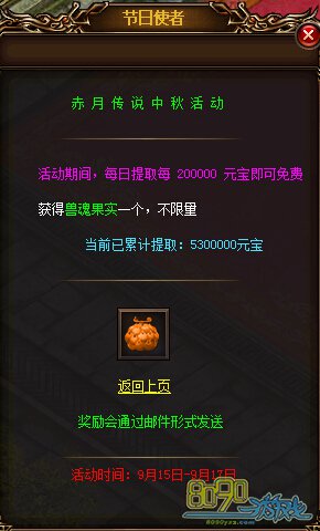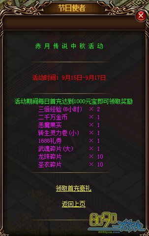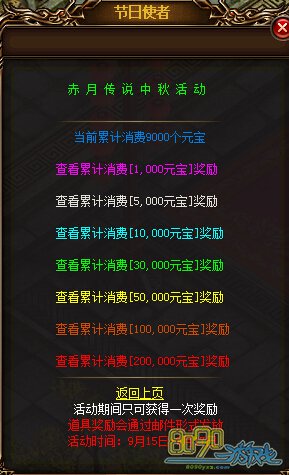条 件:充值达到30W元宝(活动期间仅限1次)