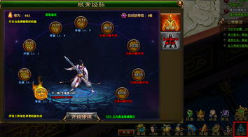 经脉系统,可从游戏下方点击经脉进入。经脉系统分为两部分,分别是经脉和根骨。