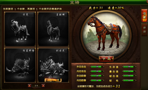 5.在坐骑图鉴处可开通多种高级的坐骑