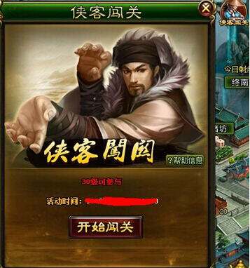等级达到30级就可以进入侠客闯关了哈,活动关卡一共有30层,需按顺序闯关,每层有1个BOSS,由侠客组合而成,击杀每层BOSS后可取拾取1个宝箱,获得1个随机侠客和1个随机侠客技能。