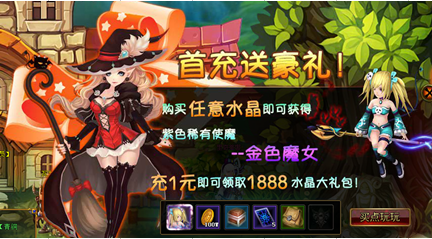 开服期间,玩家首次充值可以领取超值大礼包(包含稀有紫色使魔)