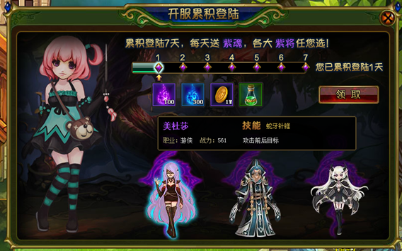 自服务器开启第一天开始,每天登陆都可获得丰厚礼品,累积可领取7天奖励