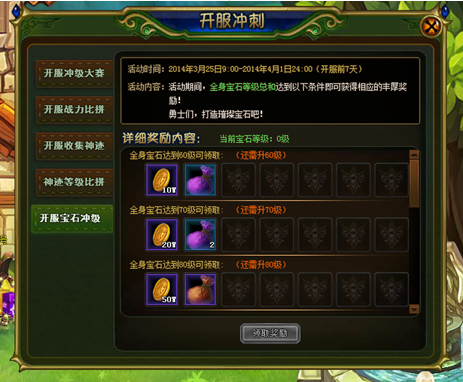 身上宝石等级总和达到某个数值即可领取对应奖励