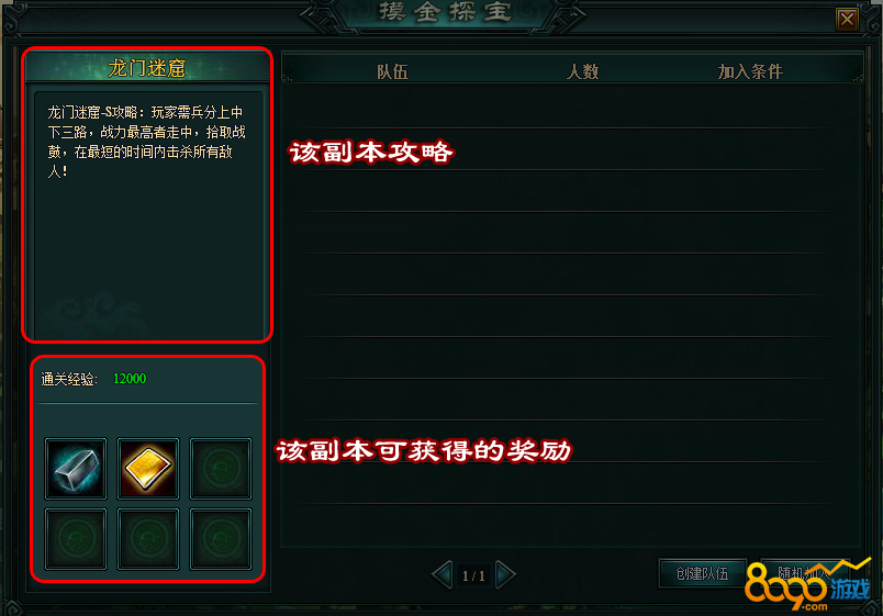 副本主页面上可以看到该副本攻略及详细获得奖励