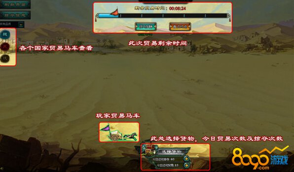 搜索"8090网页游戏"西域贸易是8090大大争霸中获得铜钱、粮草好地方,既然是好地方发生争夺事情也是屡见不鲜。接下来小编就为大家介绍下如何在贸易中防止他人的掠夺,同时掠夺他人。