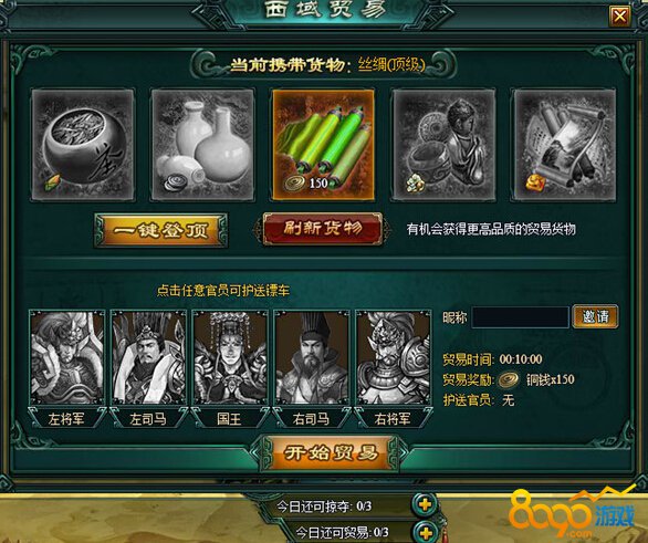 点击征战界面下的【西域贸易】,玩家将进入贸易窗口