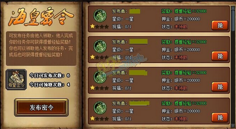 小编这里提醒越高级的海皇密令发布的任务越好,最后获得的奖励越高
