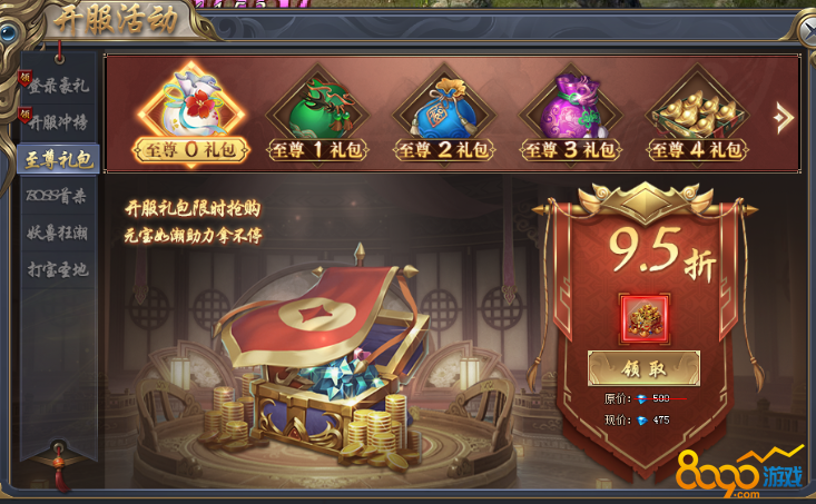 开服限时抢购:原价500现价475(95折)