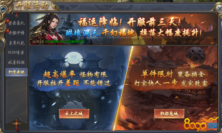 仅限开服前三天,超高爆率!一步登天!