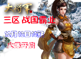 8090大将军三区战国霸业将于2012年12月12日13点盛世开启。首度推出征战城池系统,攻城掠地,一统江山!除了精彩丰富玩法,8090还为大家准备了丰厚的奖励以及各种好玩的活动,帮助各位在大将军中一展英姿,招募武将,成就雄图霸业!
