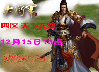 8090大将军四区天下无双将于2012年12月15日13点盛世开启。首度推出征战城池系统,攻城掠地,一统江山!除了精彩丰富玩法,8090还为大家准备了丰厚的奖励以及各种好玩的活动,帮助各位在大将军中一展英姿,招募武将,成就雄图霸业!