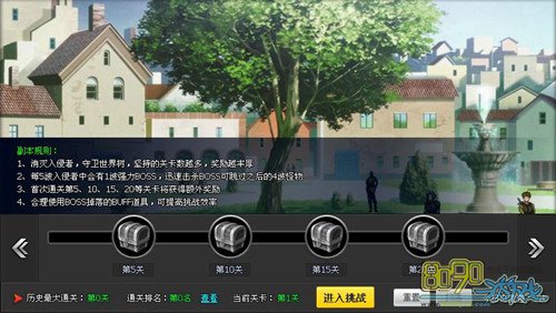 每5波敌人会出现boss级敌人,快速击杀boss可令挑战难度大大降低。世界树女神也会给你带来一定的帮助,在战场两侧会定时刷新出buff道具。