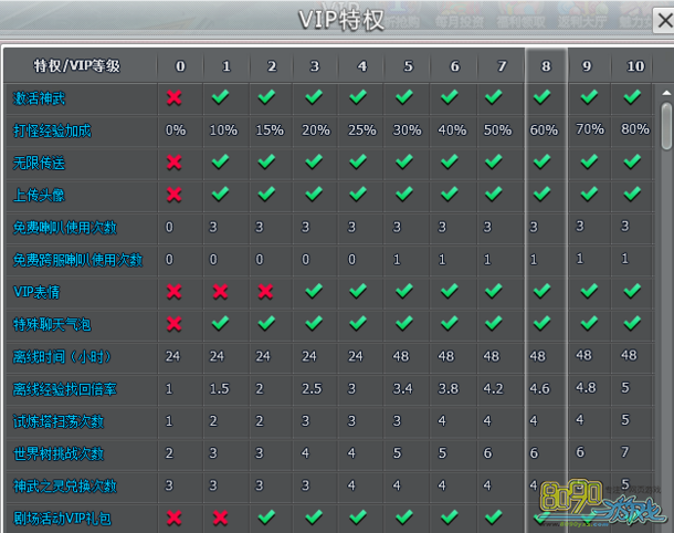 另外玩家充值达到一定金额可以激活vip特权,目前vip特权是根据玩家充值金额算的。下面提供VIP1-VIP10需要充值的金额,供大家参考。