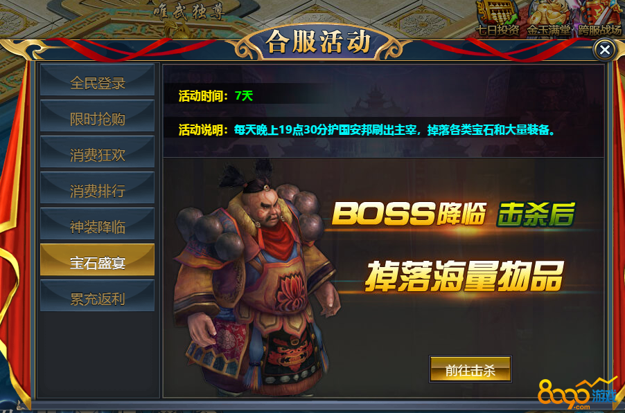 【活动规则】每天晚上19.30分护国安帮 刷怪物 掉落各类宝石道具