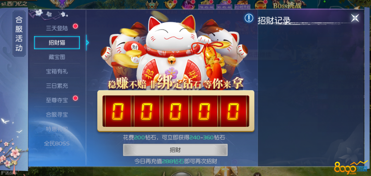 活动规则:活动期间达到对应 充值额度,可投入钻石进行招财祈福,高额获得钻石返还,获得的钻石无法在拍卖行中使用