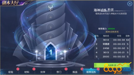 海神试炼就是玩家通过提高自己的魂力,挑战更高的层数,获得更丰厚的奖励。玩家还可以在海神之路兑换珍惜道具。