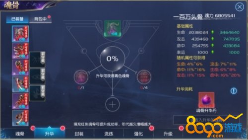 玩家升到一定的级数可以开启魂骨升华系统。除了魂骨、升华还有封装、洗炼、强化、升级。都是对我们的属性有所改变。