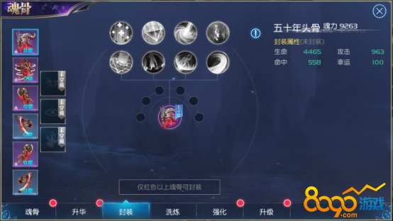 当玩家达到一定等级,就可以开启魂骨,魂骨可以升华、封装、洗炼、强化、升级。对应的等级就可以开启魂骨封装。必须是红色以上才可以封装。