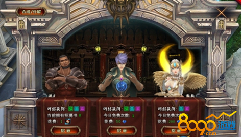 在小伙伴达到27级后就会触发主线任务,完成主线后酒馆就会出现了,打开酒馆我们就可以发现三个选项对应三种不同的招募方式: