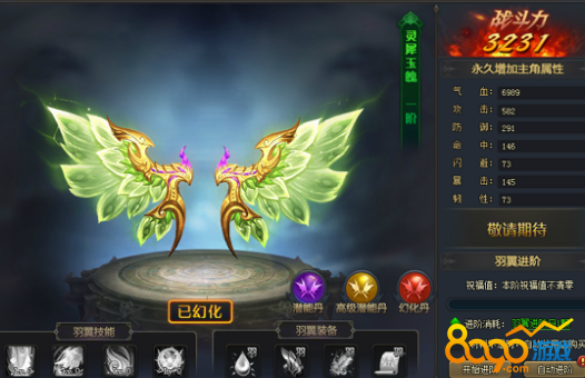 5. 奇珍:“潜能丹”、“高级潜能丹”、“幻化丹”。可增加永久的羽翼属性从而提升羽翼的战斗力。