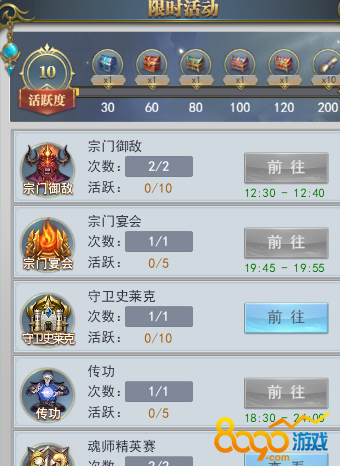 三、 每天两次御敌一次宴会。每周的精英赛、海神岛、史莱克都不要错过。说不定能开出钻石就赚到了。