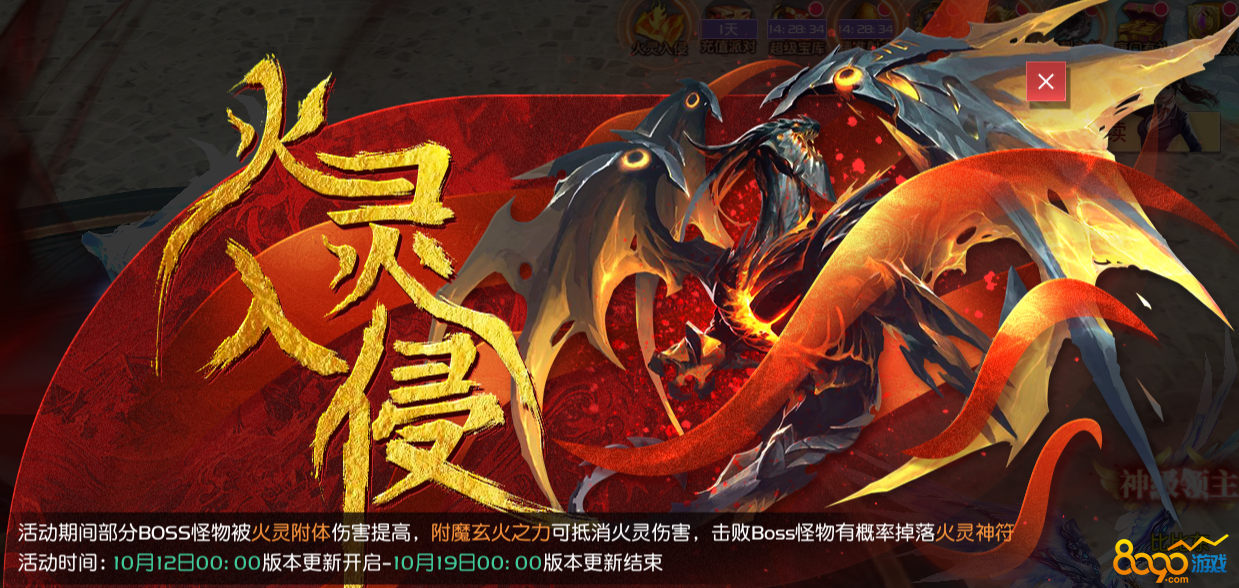 活动期间部分BOSS怪物被火灵附体伤害提高
