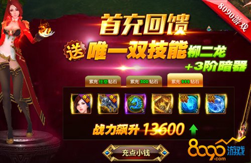 说到底首充其实在游戏的前期还是非常重要的,由于又是开服活动所以可以花费最少的钱获得相当不错的道具和奖励,在8090斗罗大陆中首冲的奖励一共有三个档次分别是任意金额、300钻石以及999钻石。