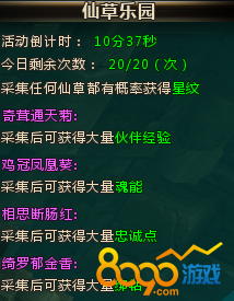 ËÑË÷"8090ÍøÒ³ÓÎÏ·"¡¡¡¡ÔÚ¶·ÂÞ´ó½ÖÐÏɲÝÀÖÔ°ÊÇÒ»Öַdz£ÓÐȤµÄÍæ·¨£¬Íæ¼Òͨ¹ý²É¼¯²»Í¬ÖÖÀàµÄÏɲݻñµÃ´óÁ¿µÄ²»Í¨¹ýÖÖÀàµÄ½±Àø¡£ÄÇôÏɲÝÀÖÔ°µ½µ×Ó¦¸ÃÔõÃ´Íæ£¬¸±±¾ÖÐÓÐÄÄЩֵµÃ×¢ÒâµÄµØ·½ÄØ?С±à½ñÌì»áΪ´ó¼Ò´øÀ´ÏêϸµÄ½éÉÜ¡£