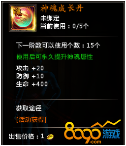 神魂可以喂食成长丹,成长丹可以固定值增加神魂的进阶属性;