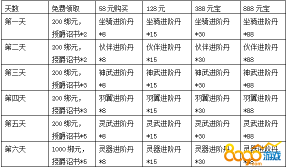 活动规则:玩家每天可免费领取一次超值礼包,若想继续获得则可通过元宝购买超值礼包。