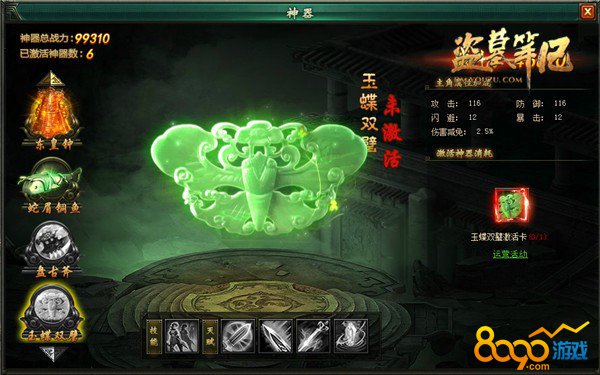 轩辕剑、盘古斧、东皇钟、蛇眉铜鱼......不管是上古传说中的神兵利器还是价值连城的出土文物,《盗墓笔记》中的神器都有着骇人的伤害。此次新增雨蝶双壁神器拥有独一无二的分身技能,使用后会召唤一个继承本体80%属性的幻象和玩家并肩作战,持续20秒输出。无论是单挑pk还是刷怪打副本都将是一枚不可或缺的制胜法宝,必然又将成为万千摸金校尉梦寐以求之物啦。