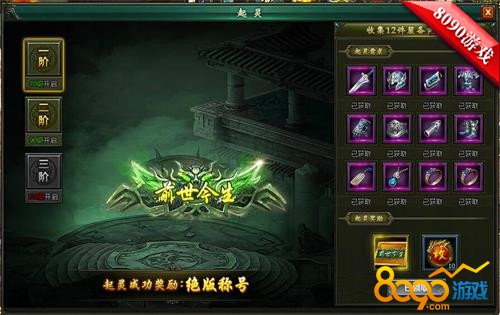 在8090盗墓笔记中,起灵系统在人物达到70级的时候开启,首次开启是第一阶段,起灵成功后会获得绝版称号前世今生,同时还会获得10个神力丹,用来增加人物攻击属性;第二阶段是玩家90级后开启,起灵成功后会获得鲁殇王的通灵奖励以及50个通灵进阶丹;第三阶段需要玩家达到120级方能开启,起灵成功后会的万奴王的通灵激活卡以及100个通灵进阶丹。起灵条件都是穿戴装备品质得到对应起灵需求即可。一阶起灵是全身紫装,二阶是全身金装,三阶是全身红装。