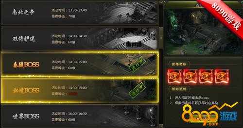 在8090盗墓笔记中新推出的限时活动秘境boss说的就是精绝古城哦,当大家达到160级的时候就可以开启古城秘境的玩法了哦,大家可以通过主城的传送员进入副本,在副本中有着大量的boss,一层有3个前置BOSS和1个守关BOSS,二层有4个前置BOSS和1个守关BOSS,尽管危险但是掉落的物品却是非常的丰厚呢。