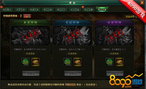 搜索"8090网页游戏"在8090盗墓笔记,总是单打独斗有什么意思,要是能和小伙伴一起闯荡那才畅快,现在,帮会就可以帮助你和小伙伴一起战斗哦!帮派狩猎的活动已经开启,还不来参加吗!话不多说,接下来,就一起来游戏里看看帮派狩猎的玩法!